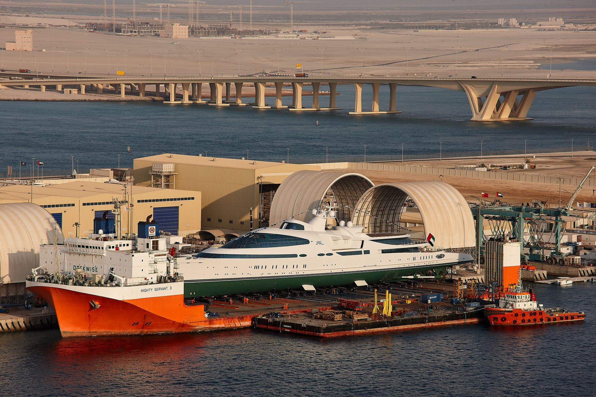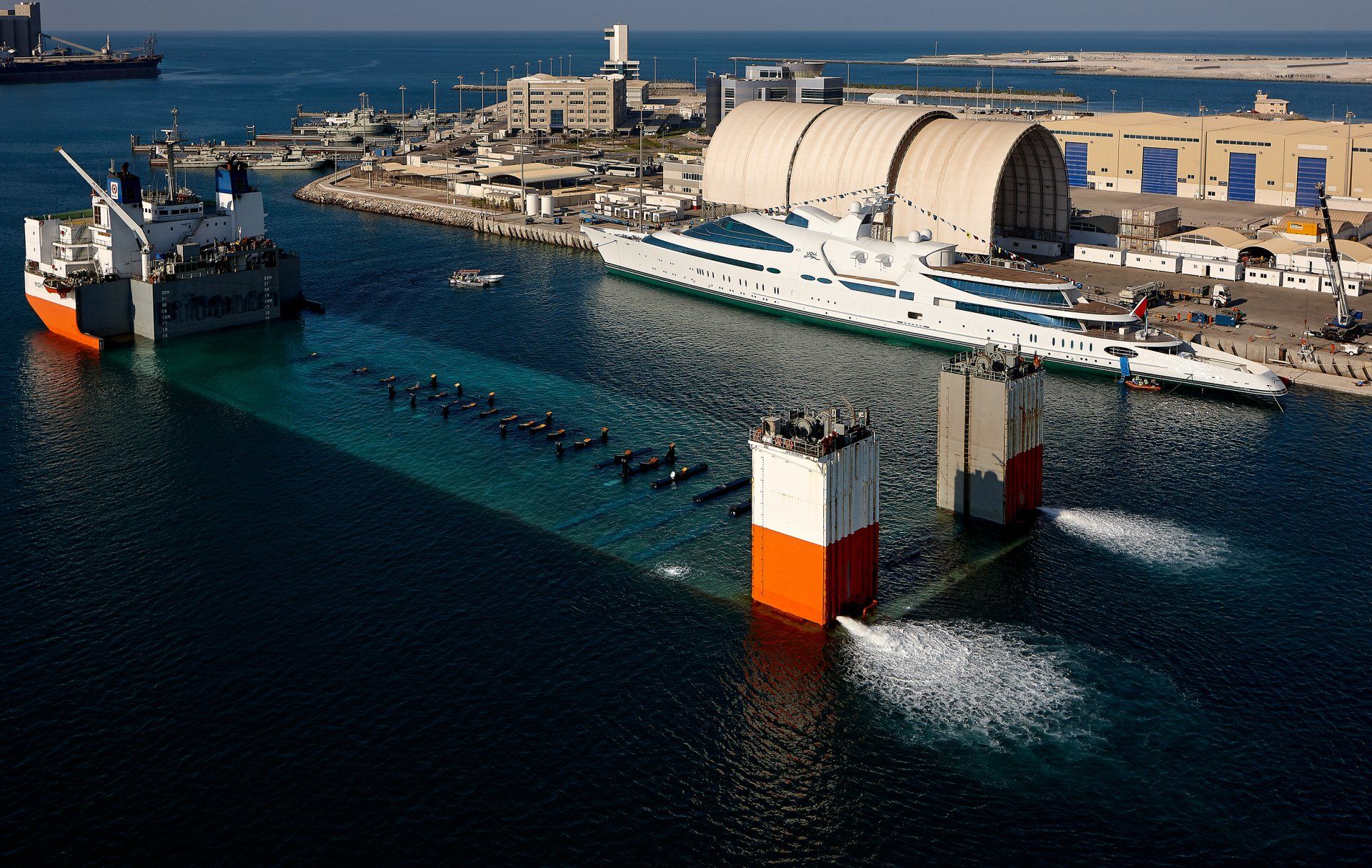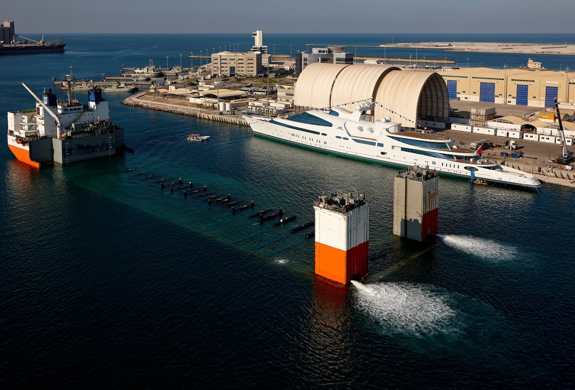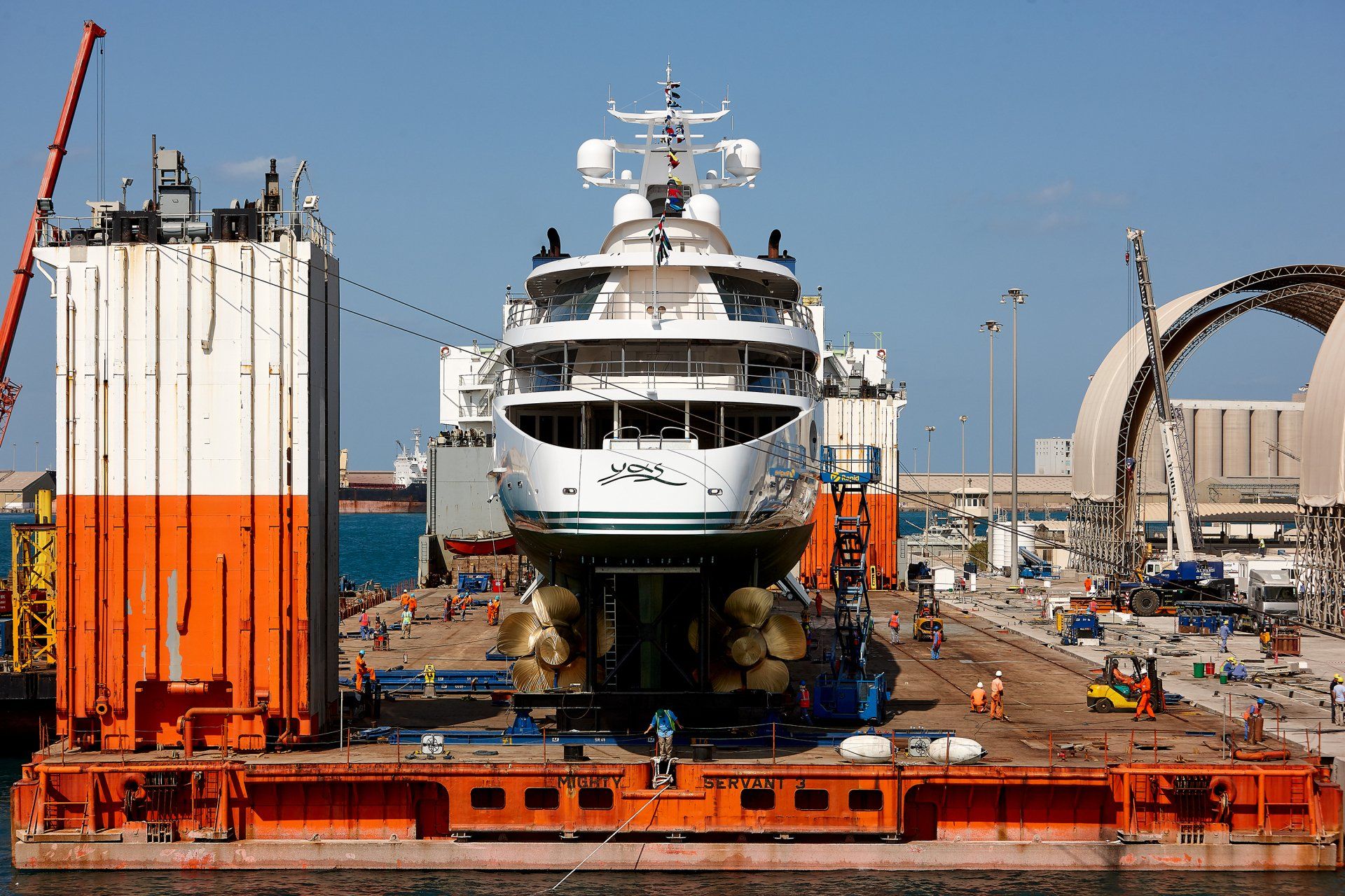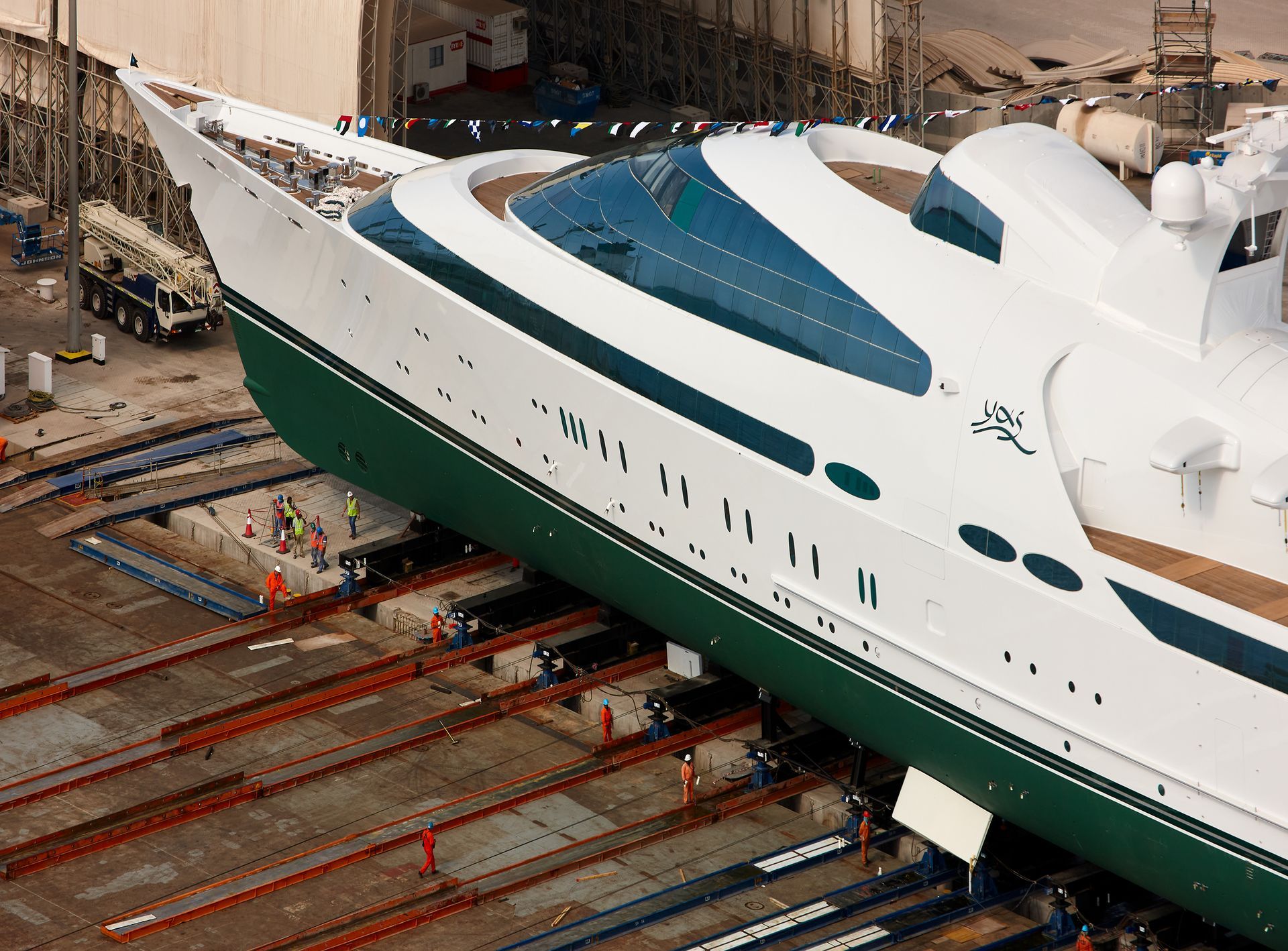Launch of the gigayacht MY Yas at Abu Dhabi Mar facility.