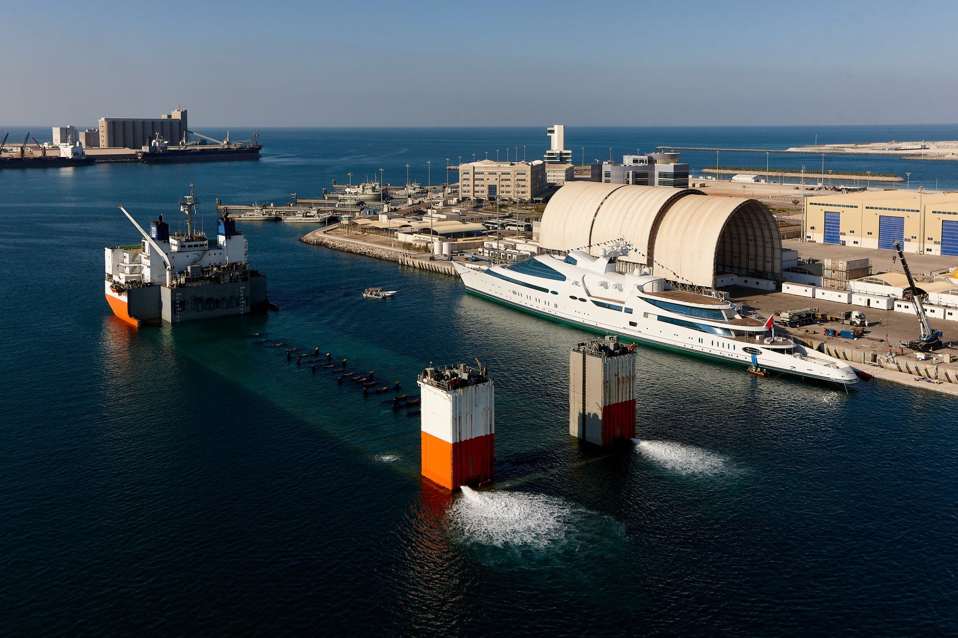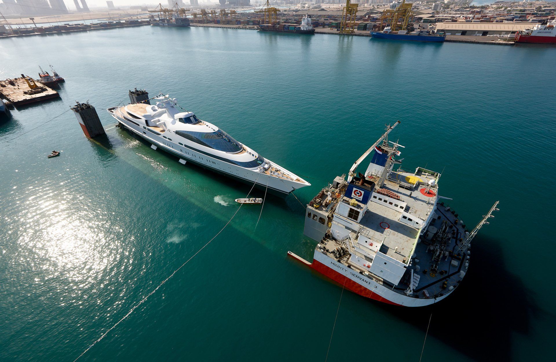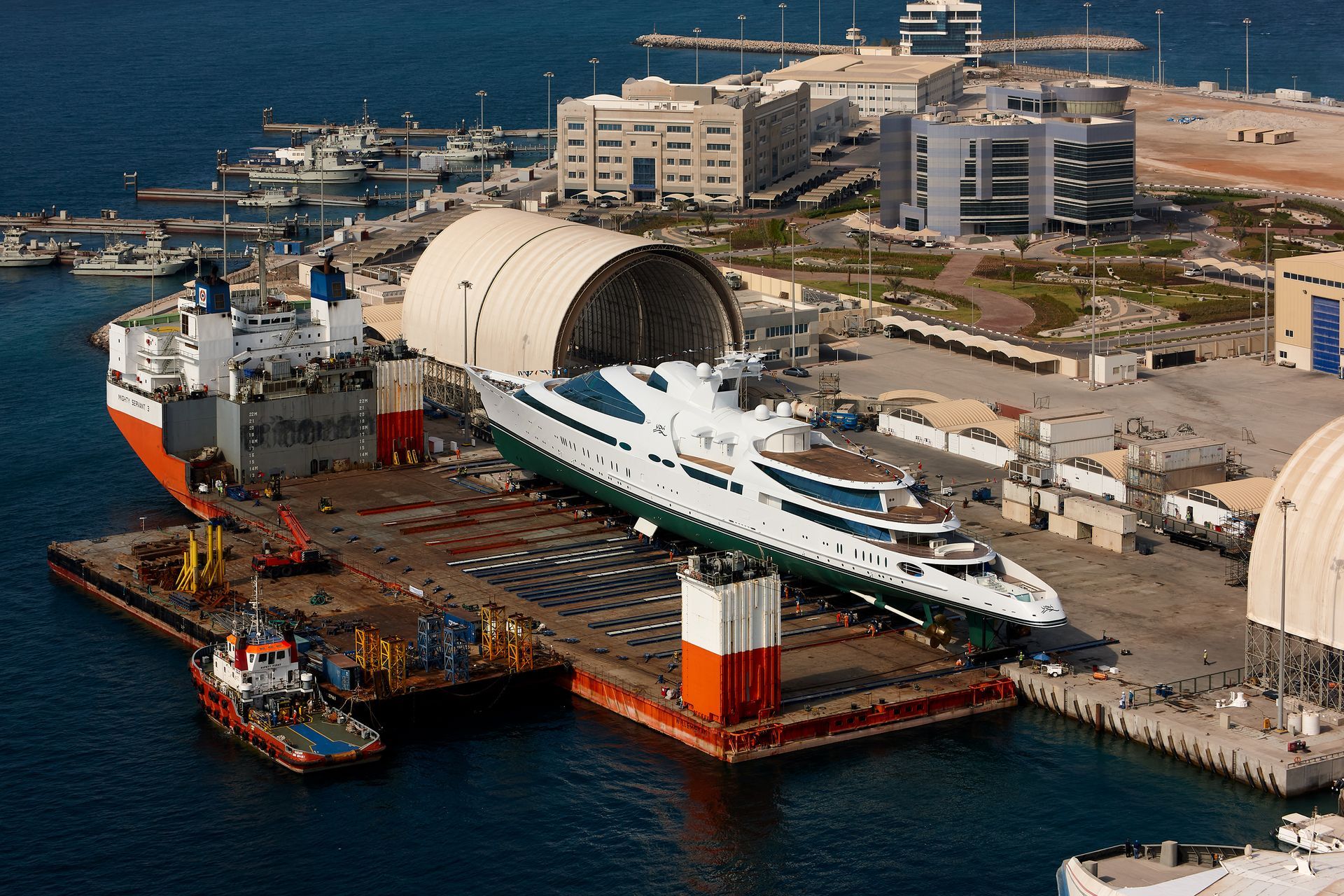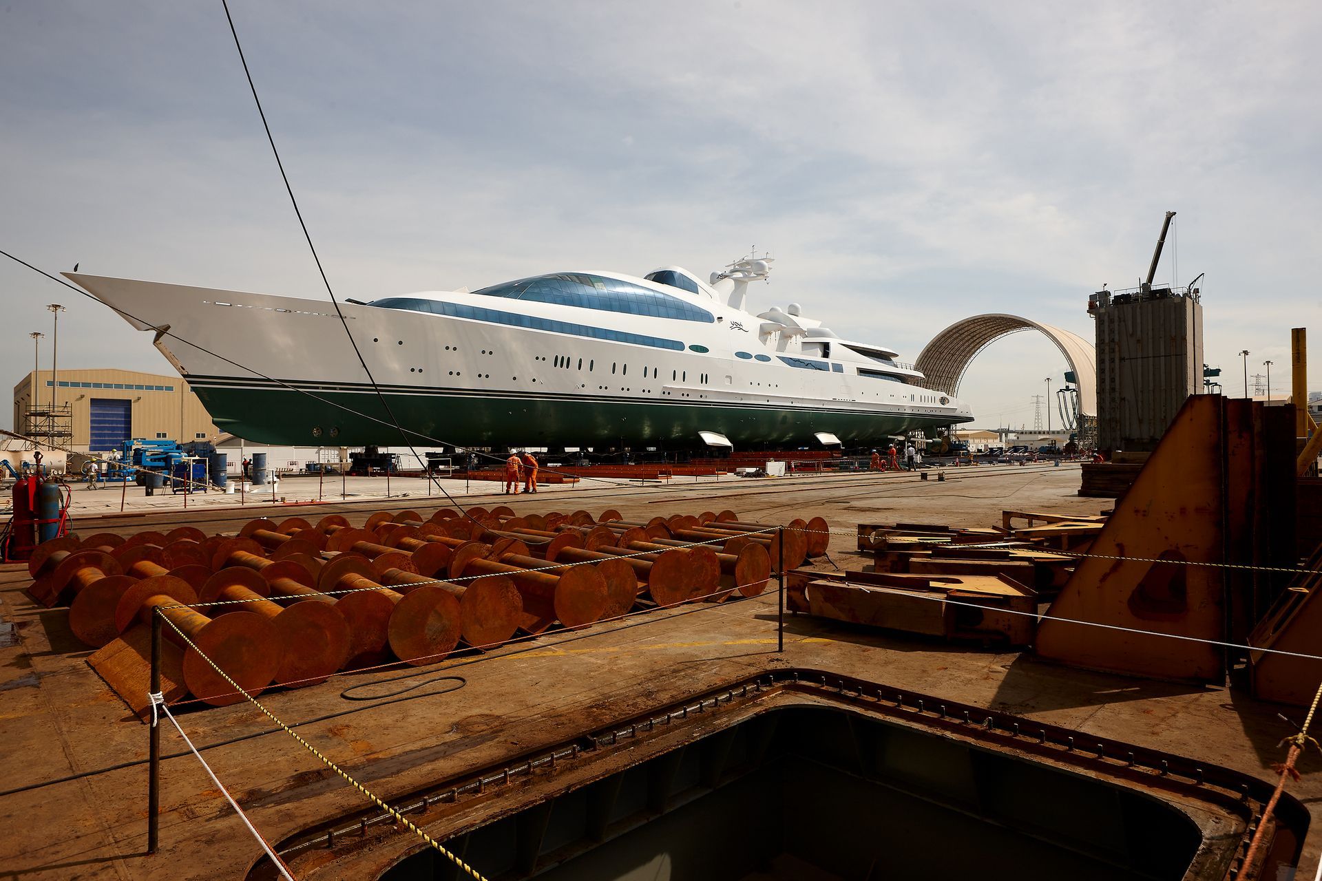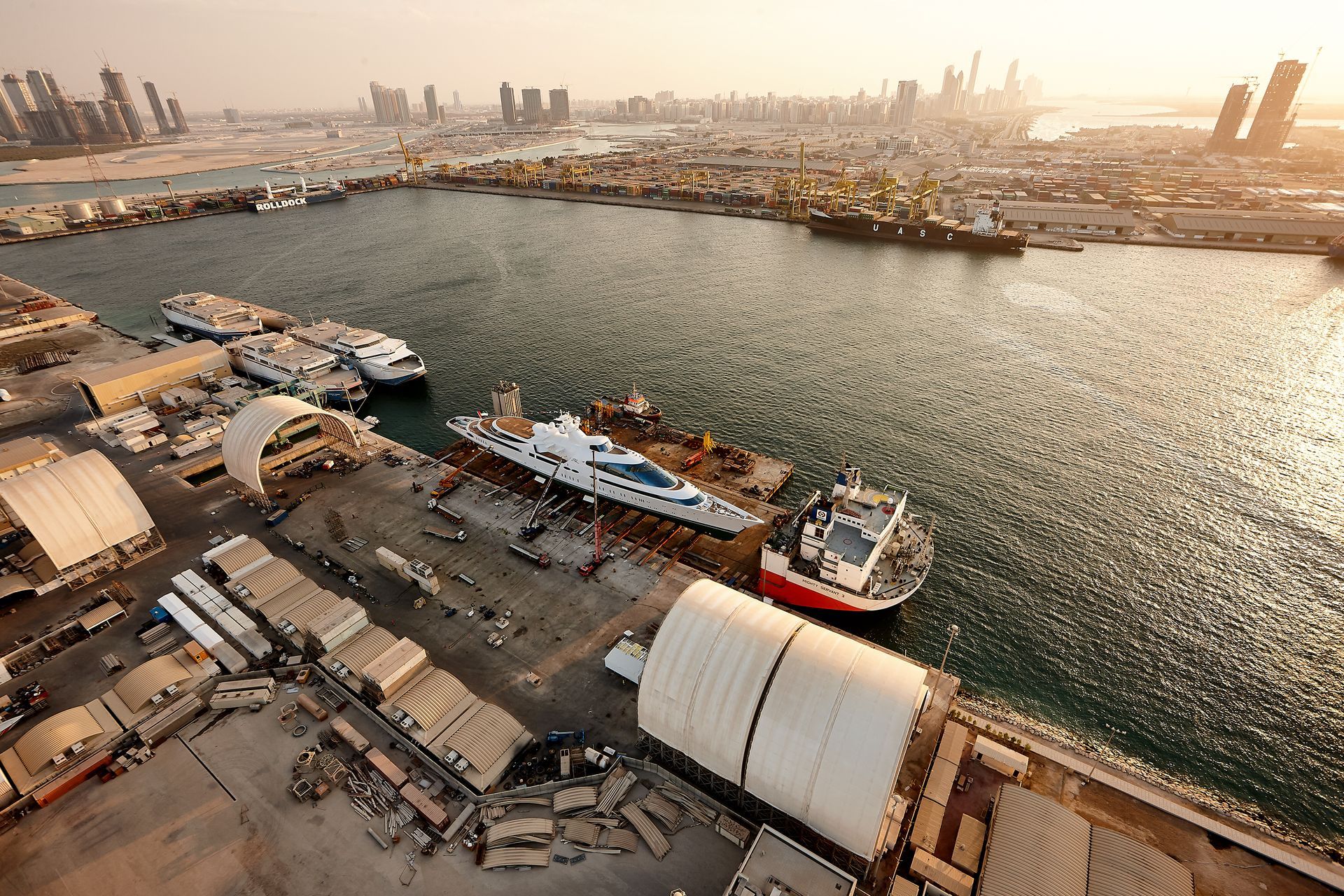 Launch of the gigayacht MY Yas at Abu Dhabi Mar facility.