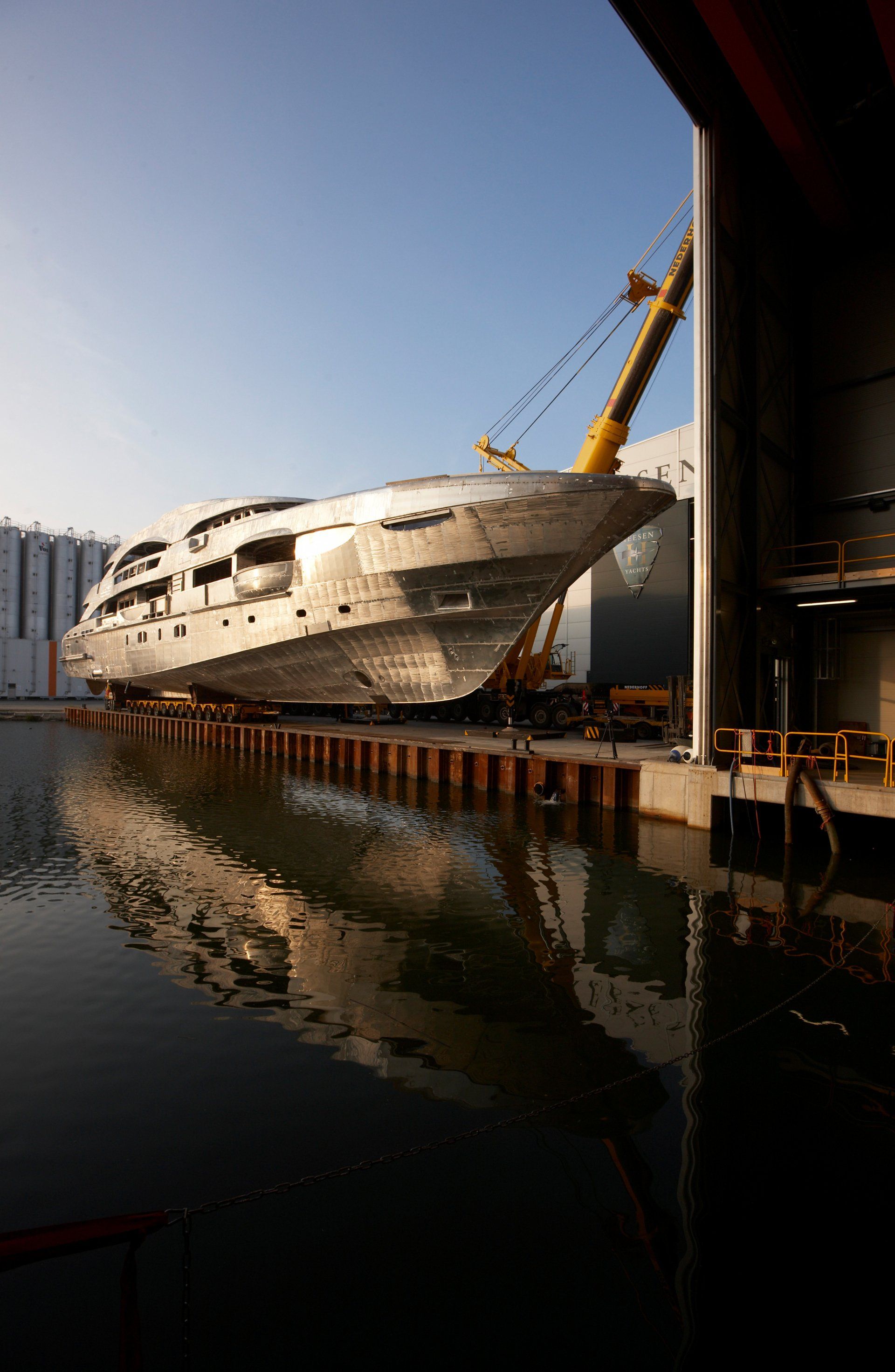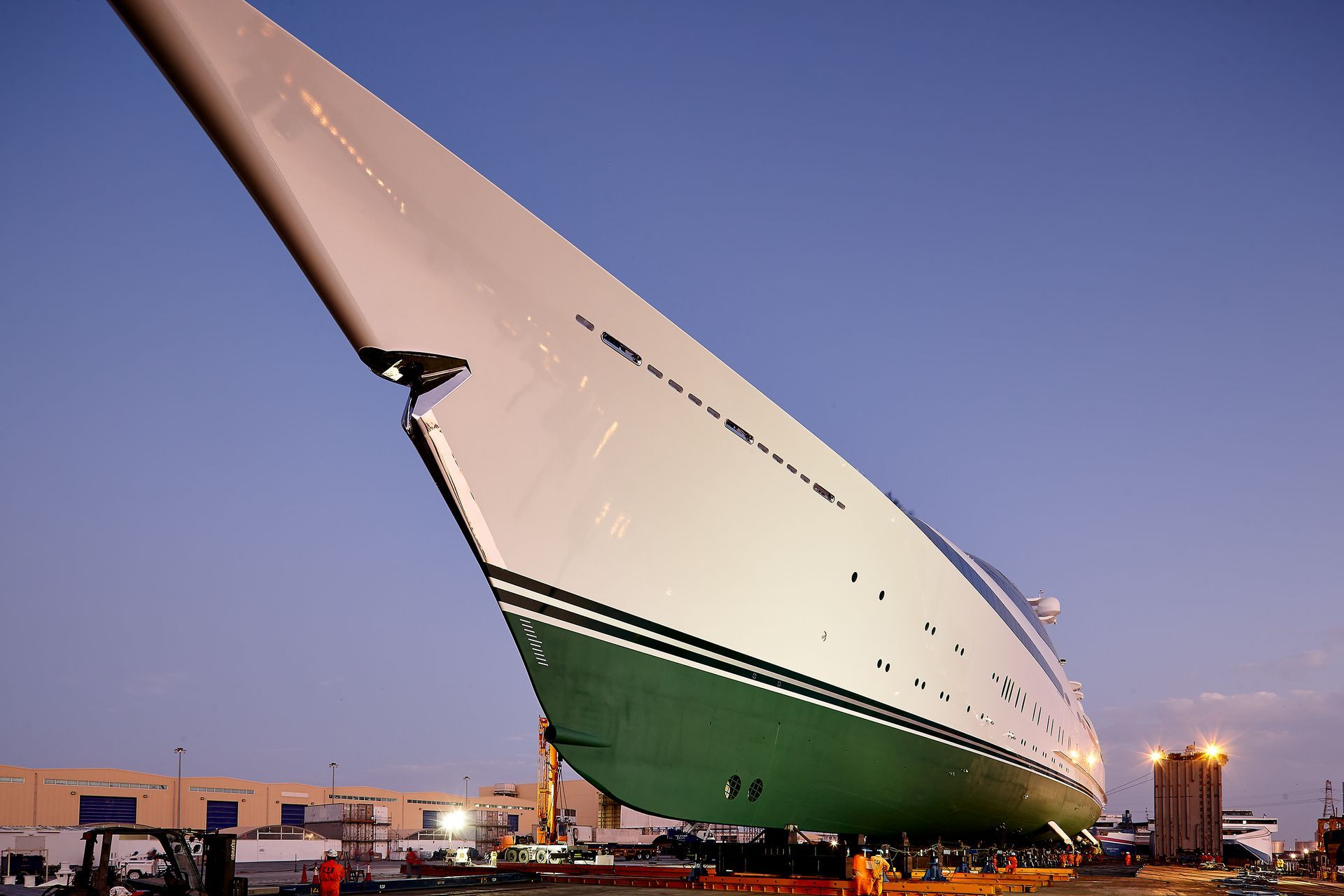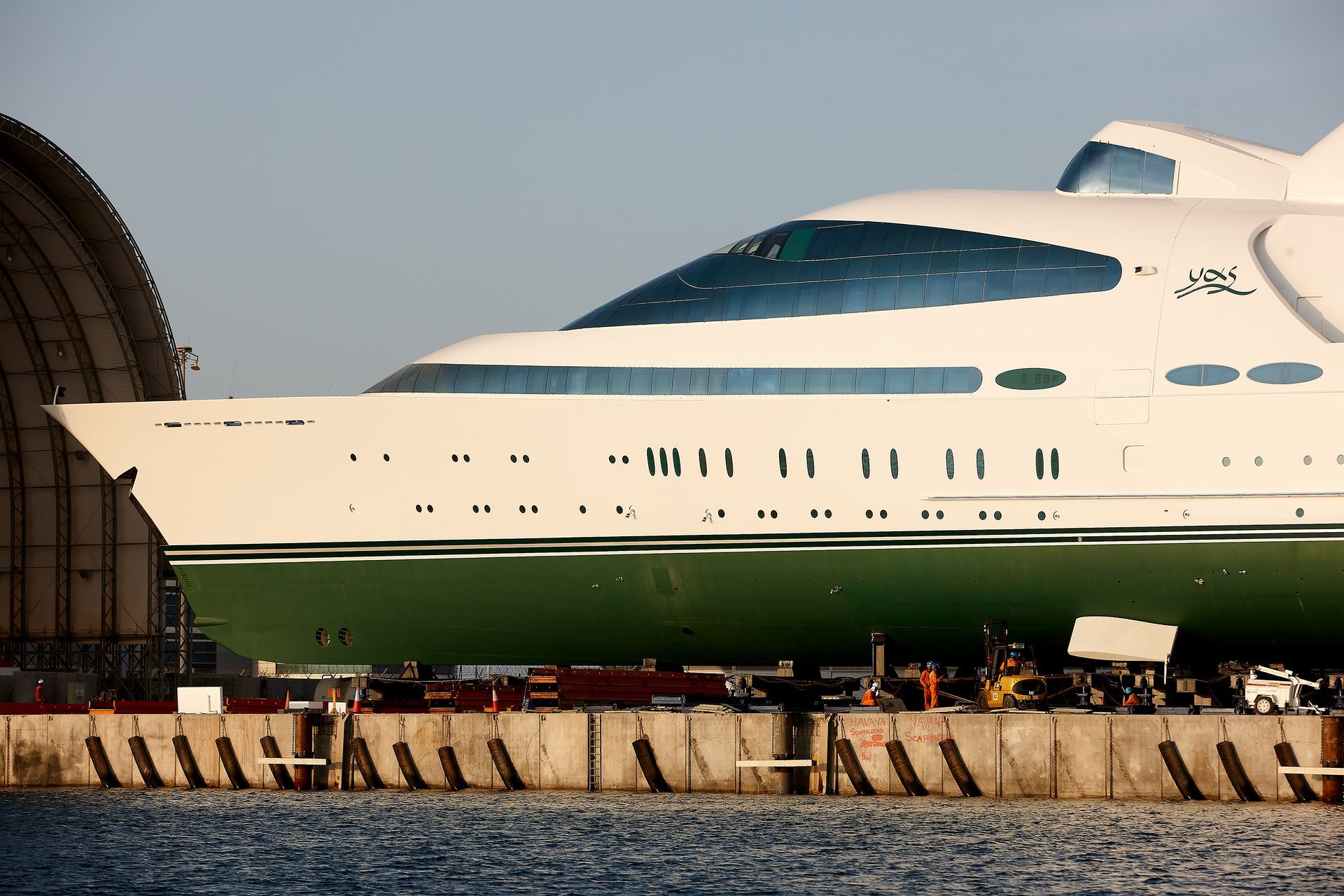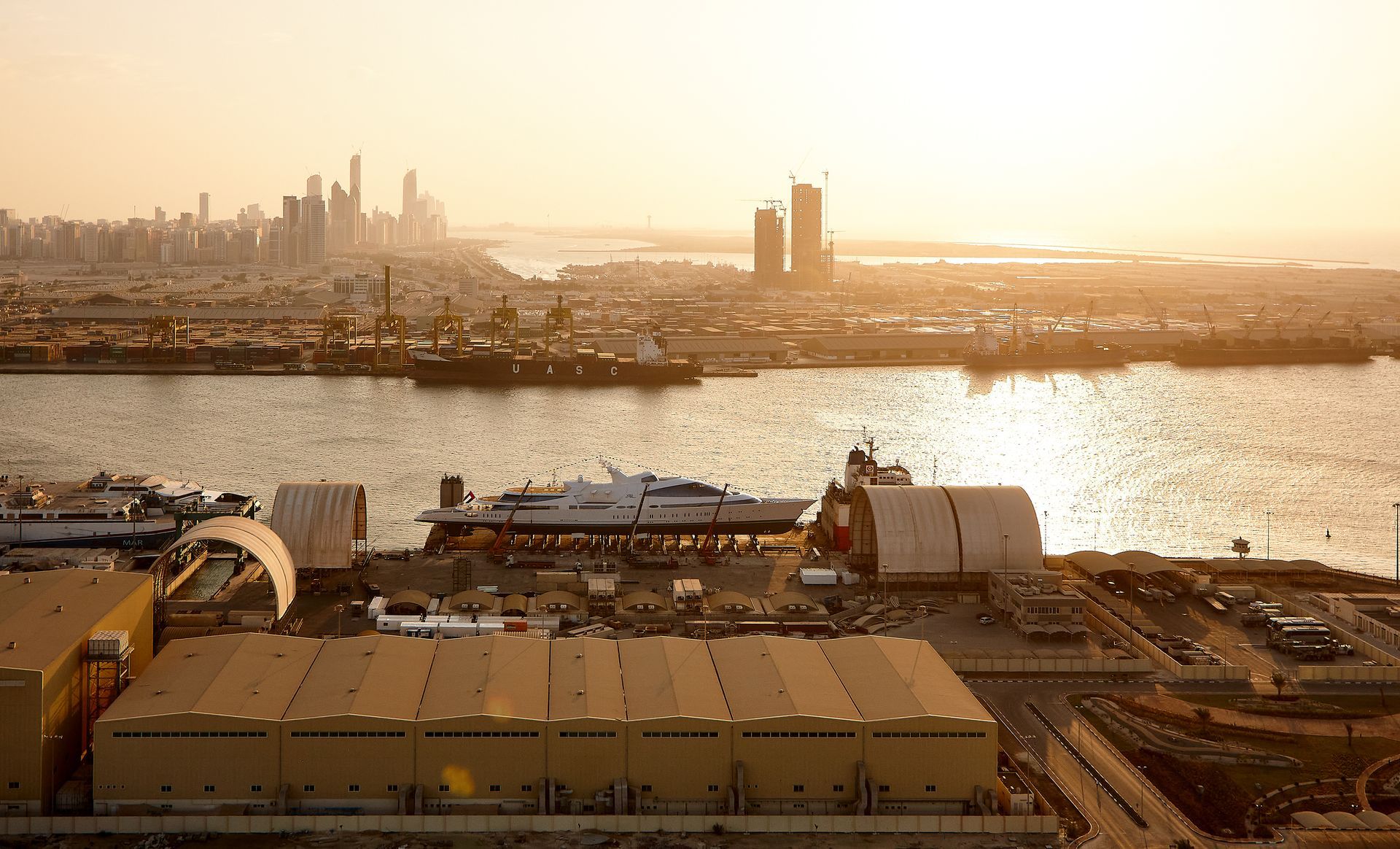 Launch of the gigayacht MY Yas at Abu Dhabi Mar facility.