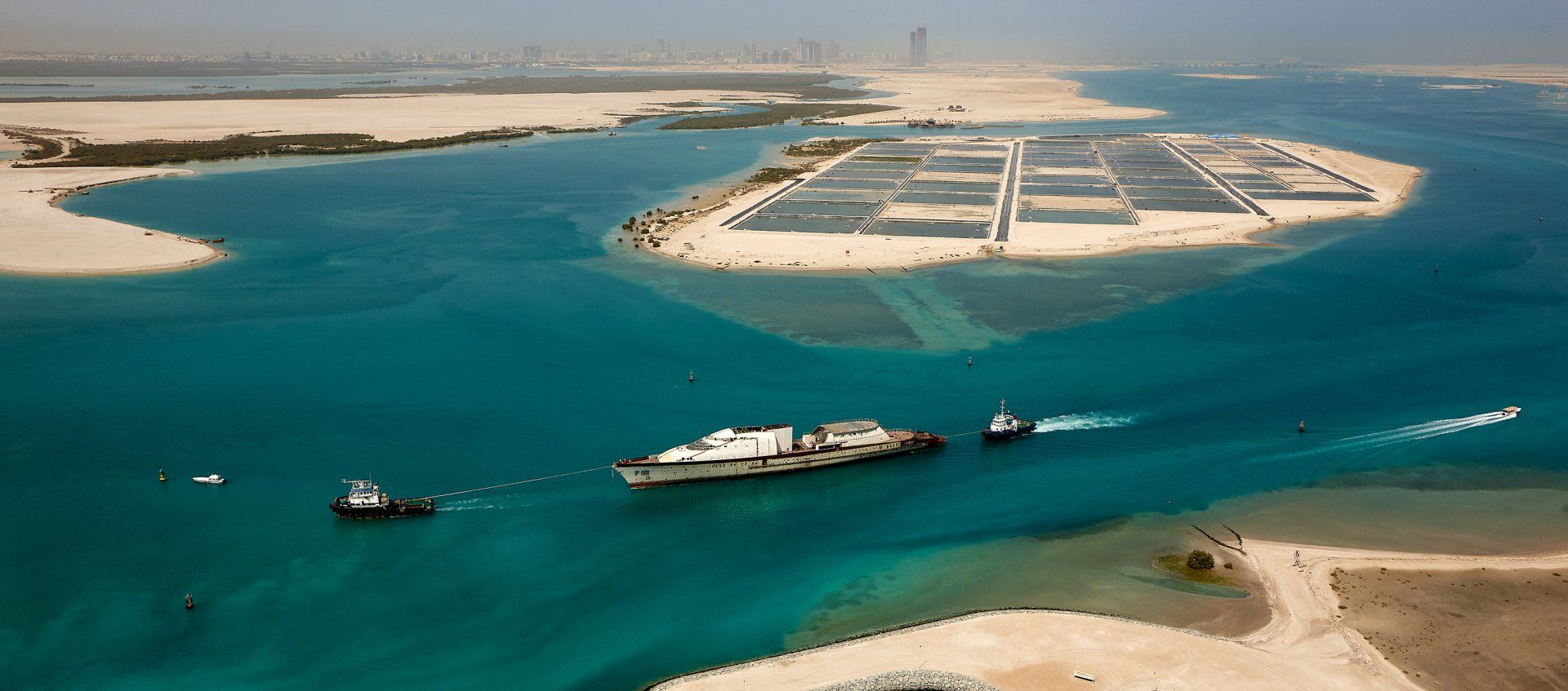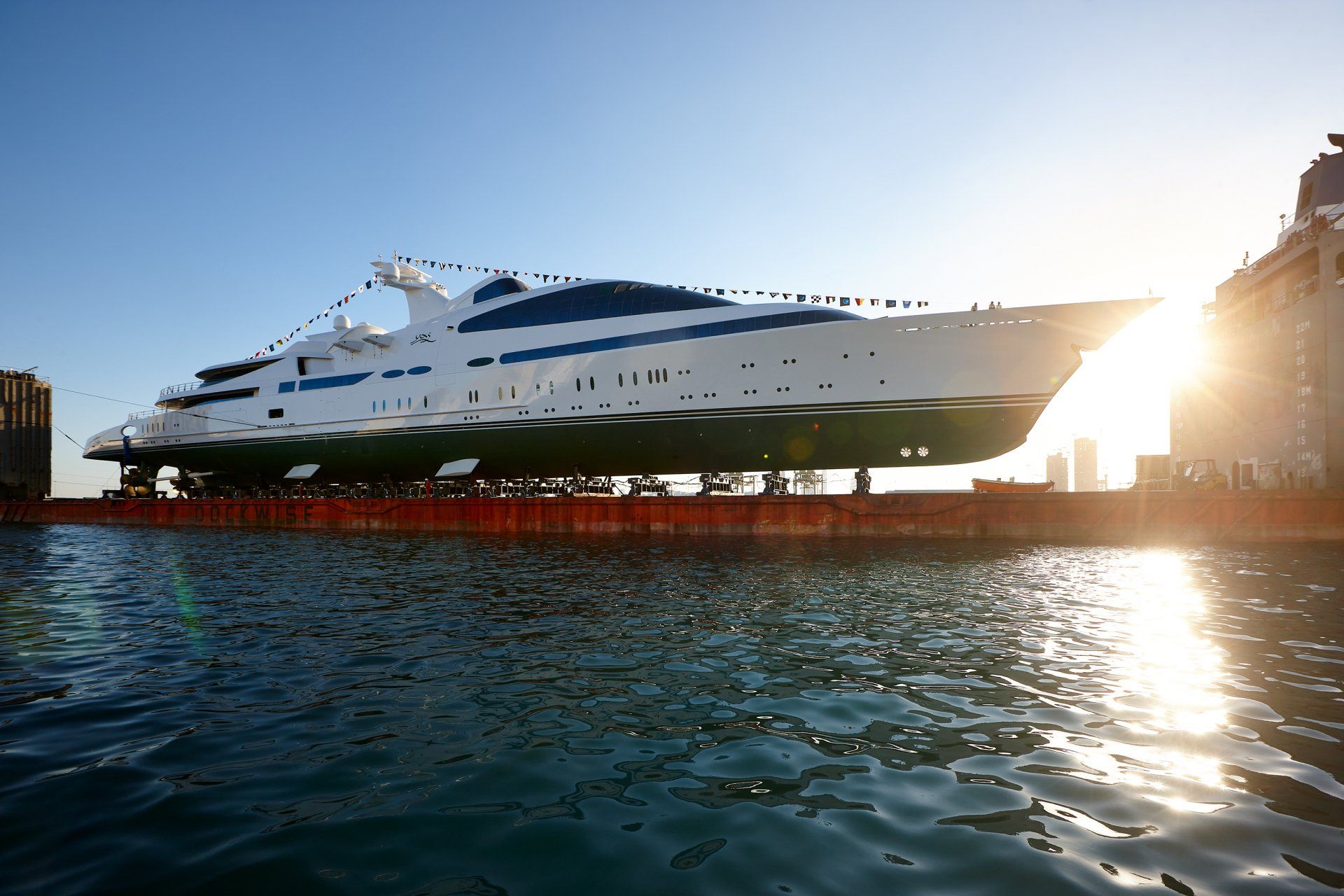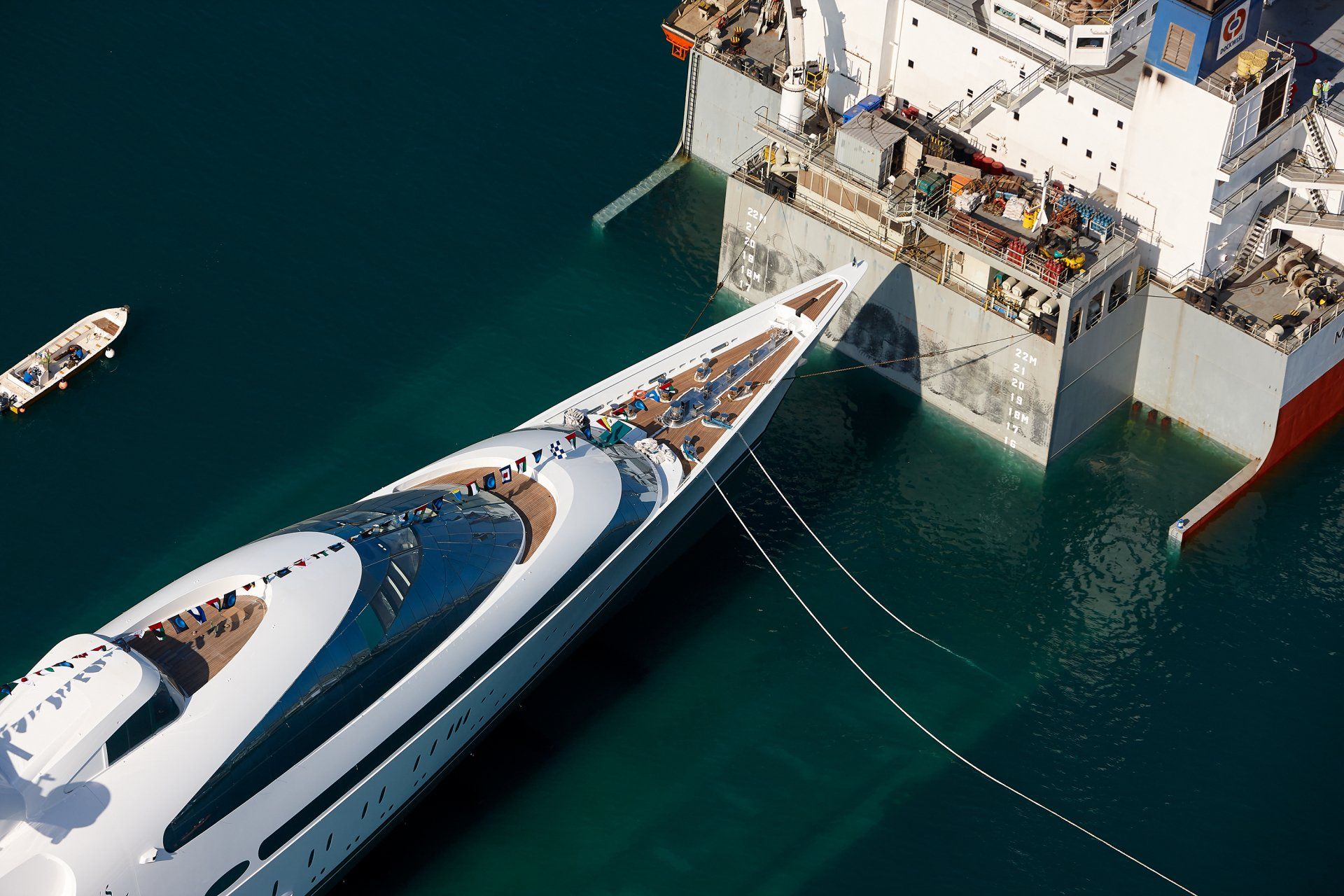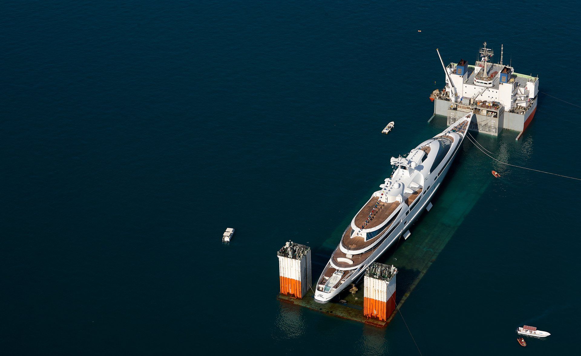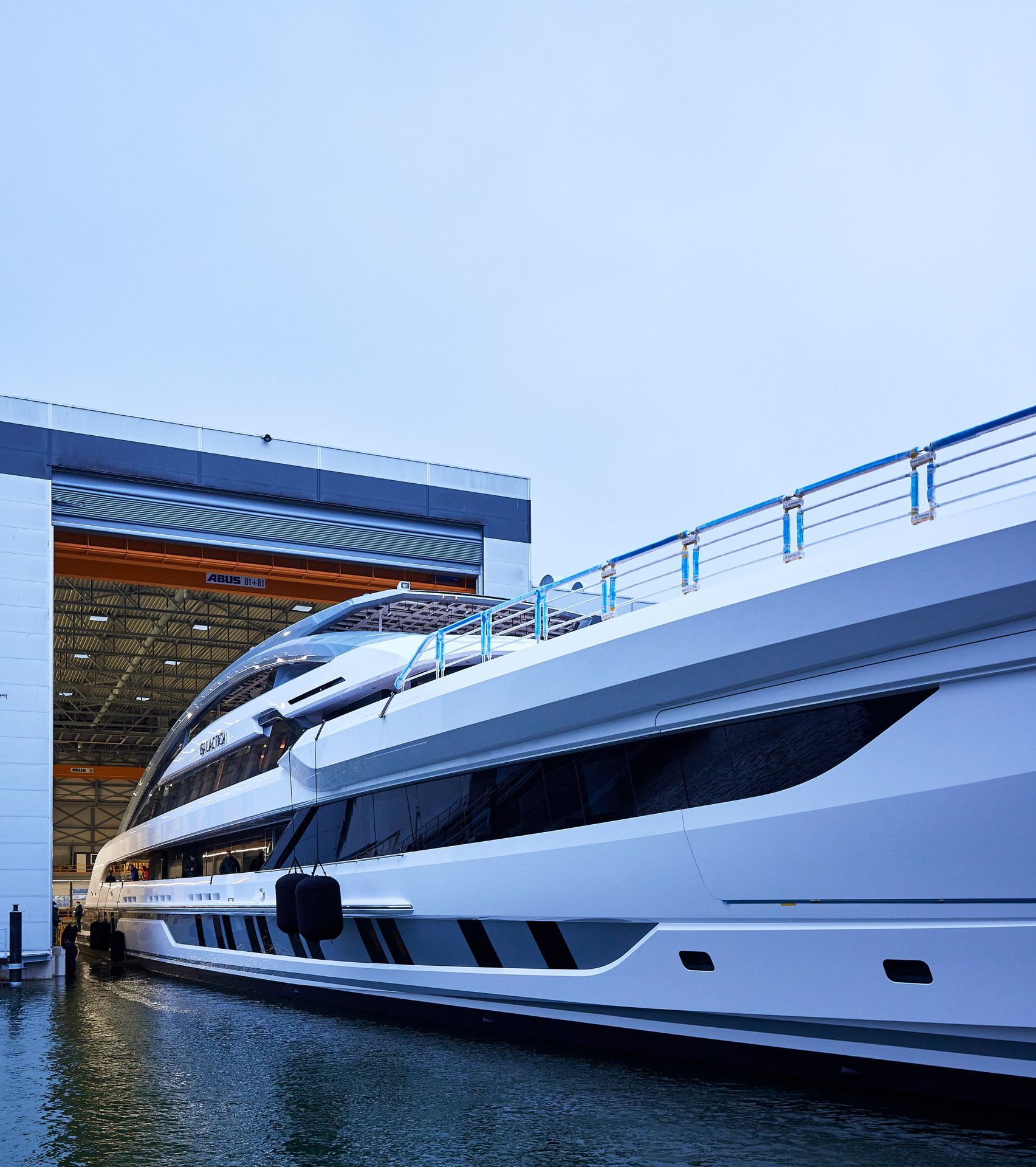 Launch of the gigayacht MY Yas at Abu Dhabi Mar facility.