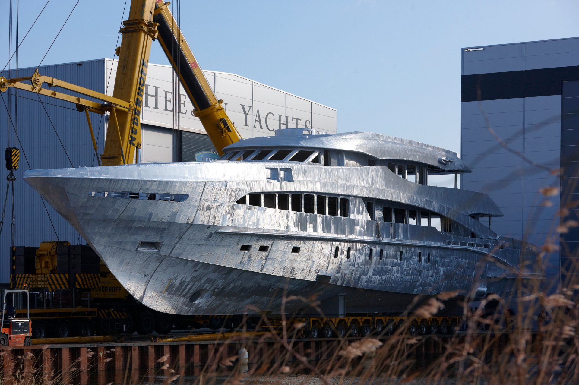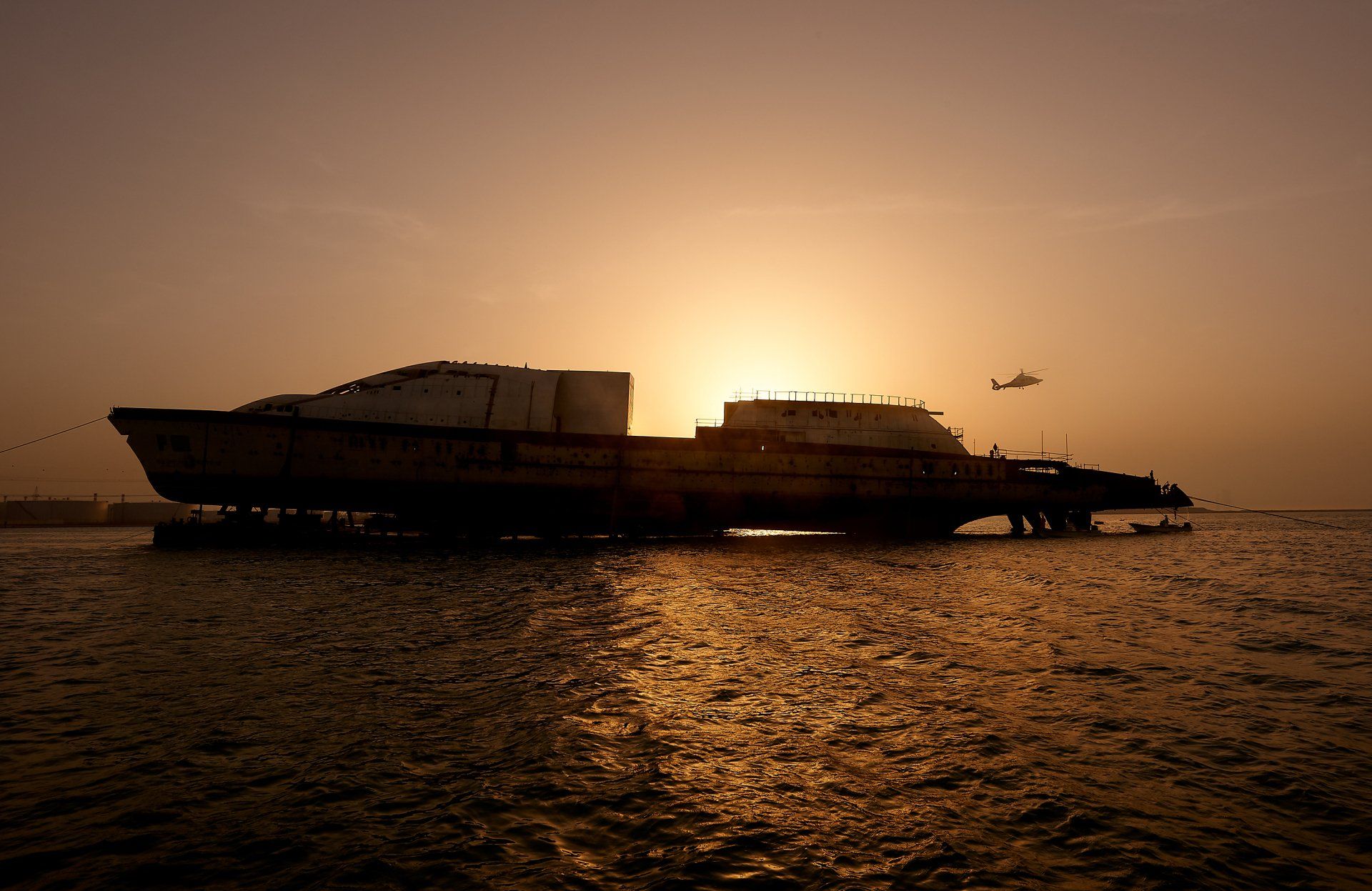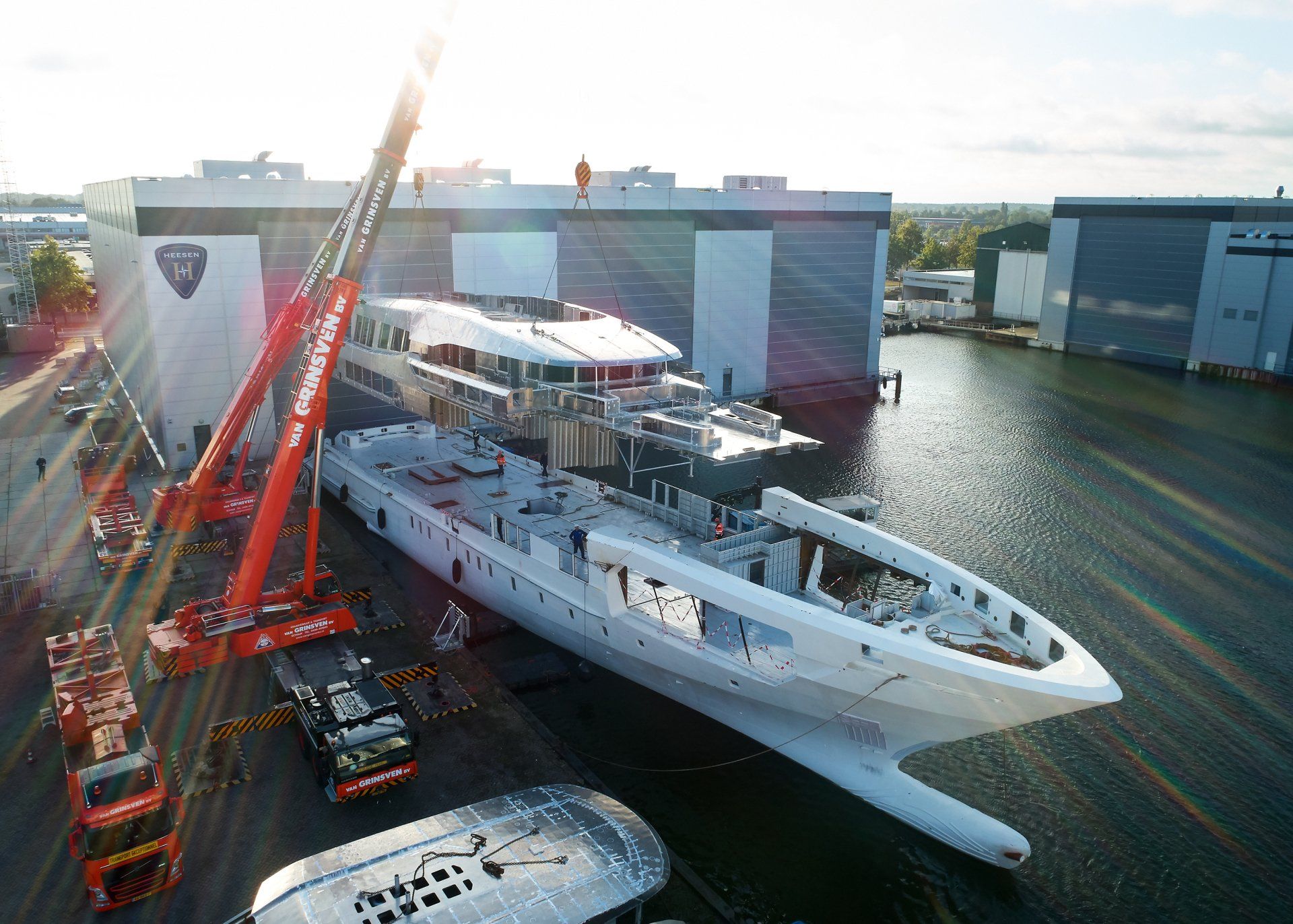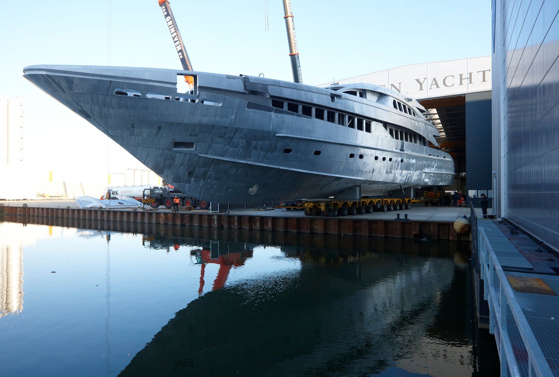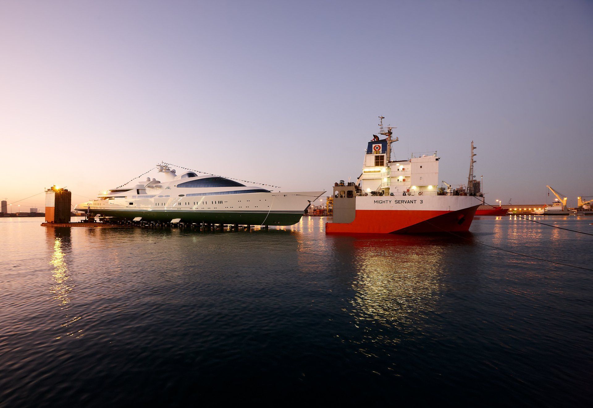 Launch of the gigayacht MY Yas at Abu Dhabi Mar facility.