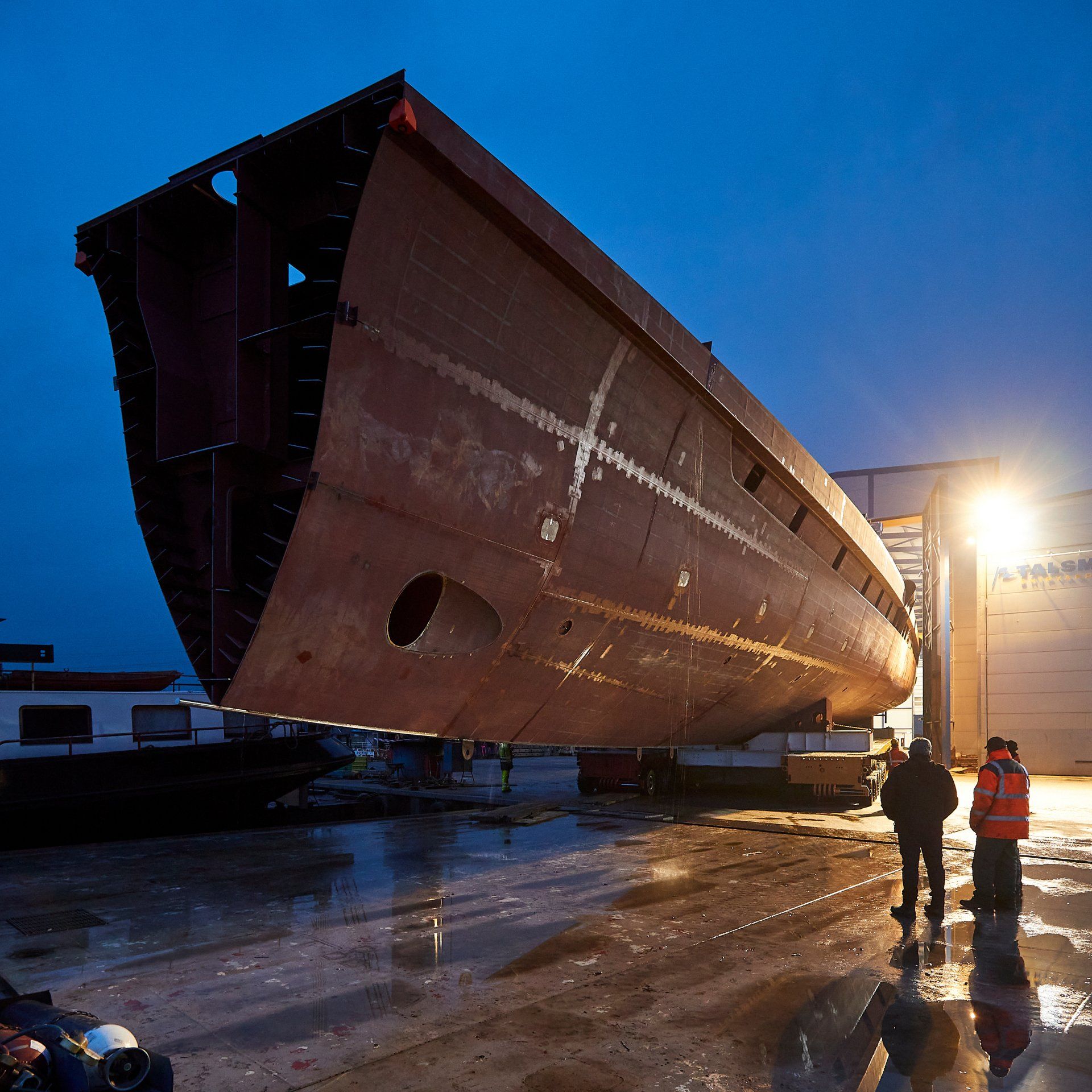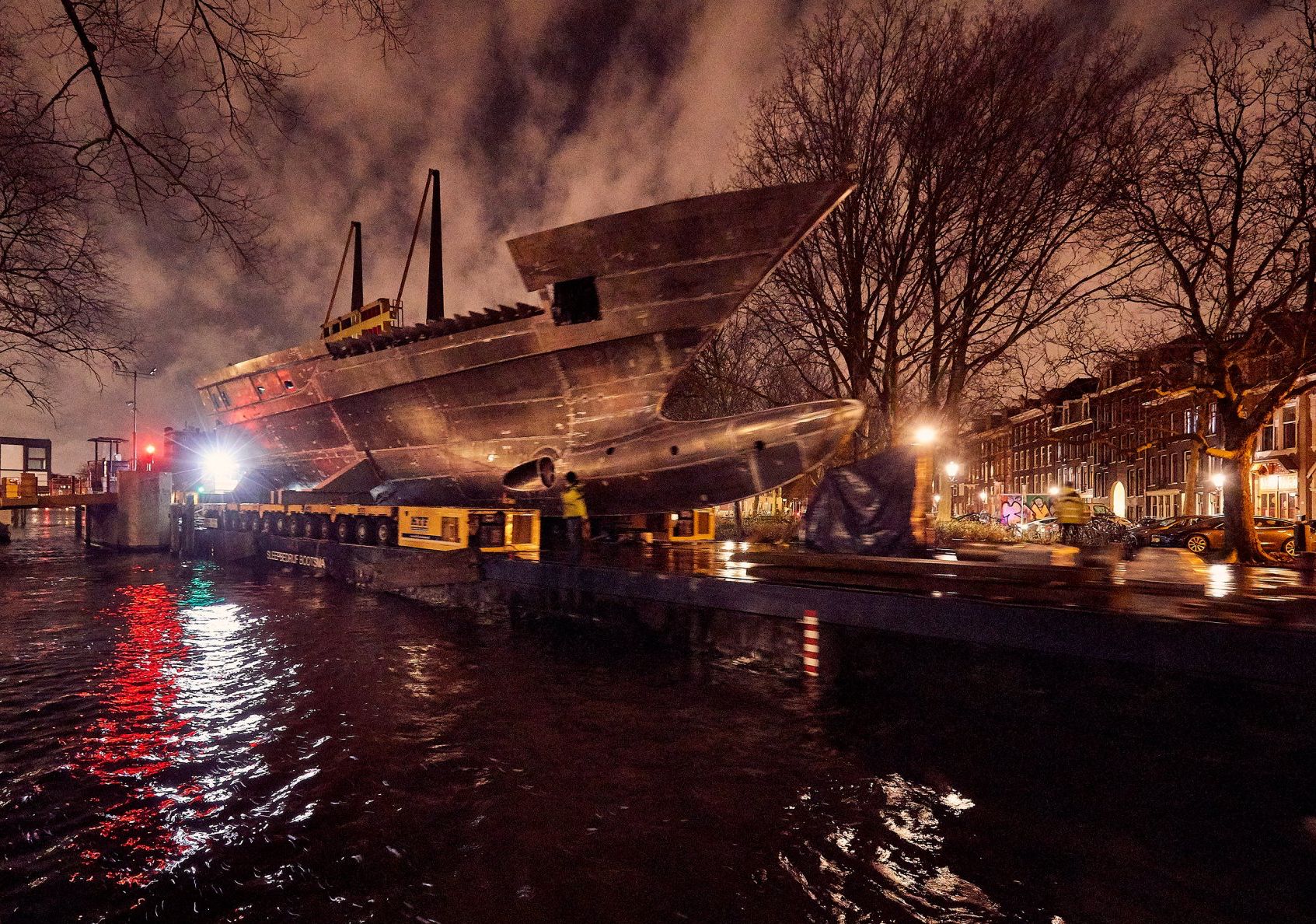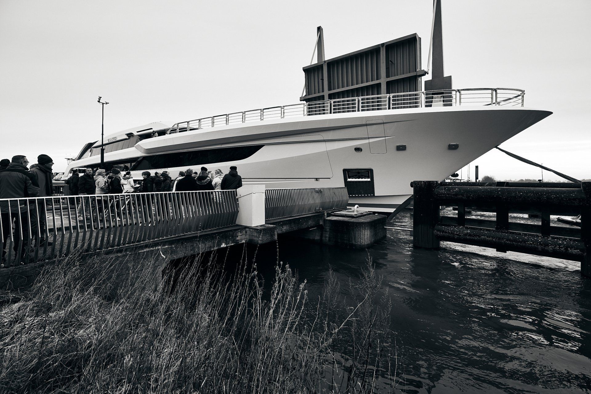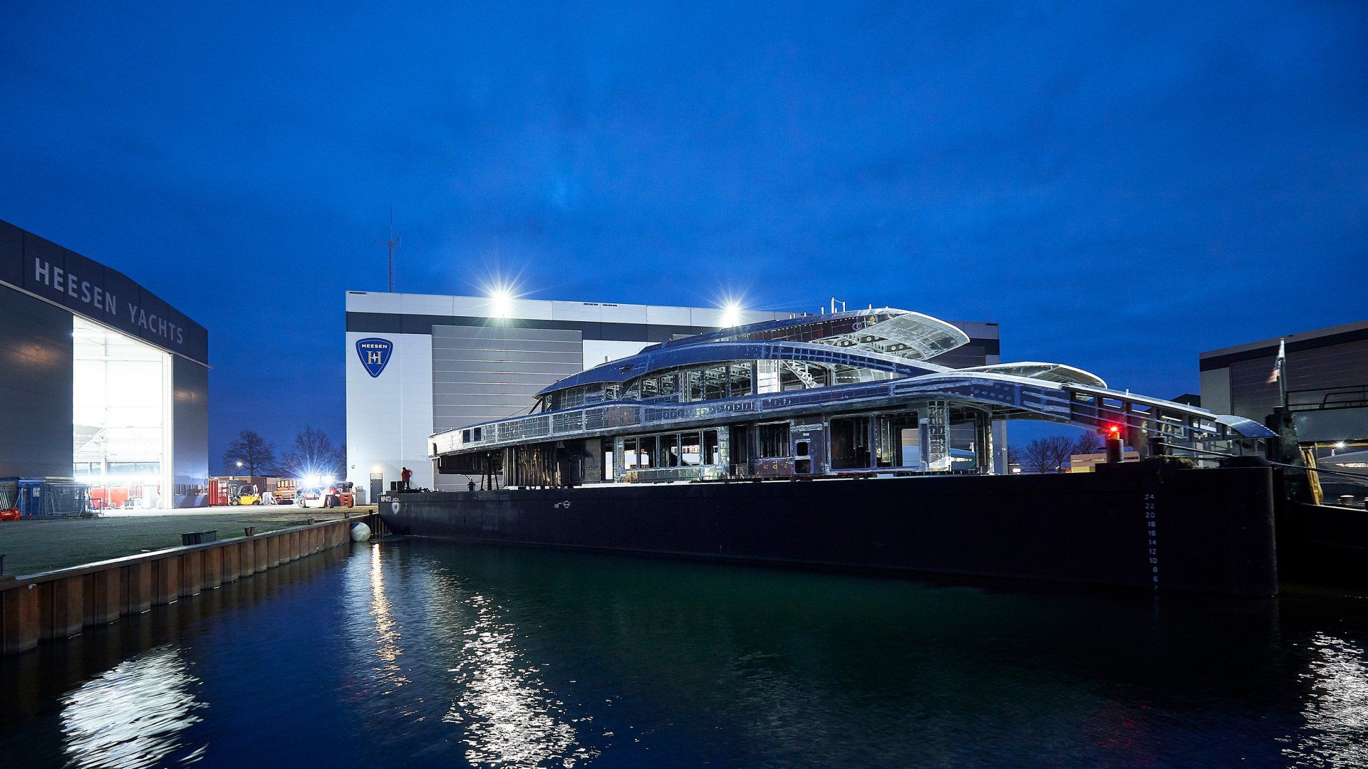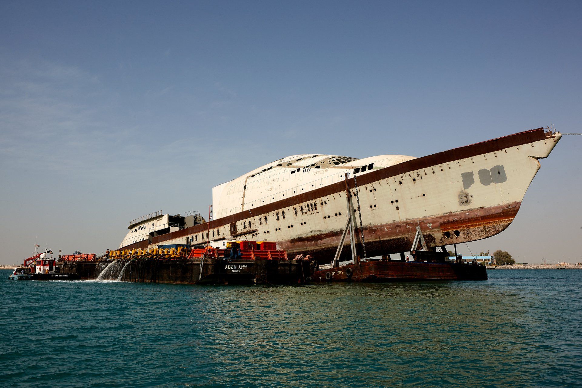 Launch of the gigayacht MY Yas at Abu Dhabi Mar facility.